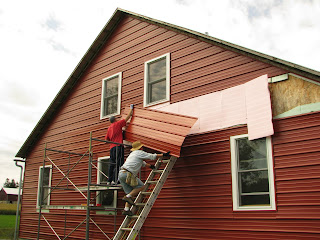 We were so lucky that my daughter & family were at the farm for Labor Day weekend. Tim helped Steve put up the new pieces of siding.